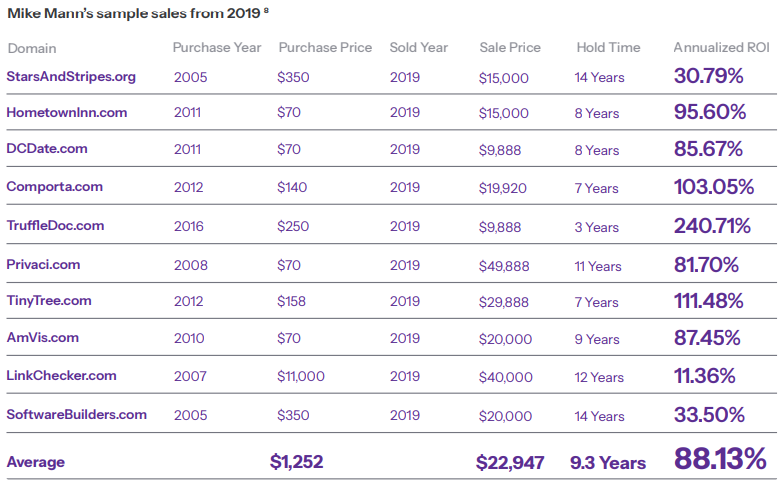 Domain investor Mike Mann has demonstrated extraordinary returns: